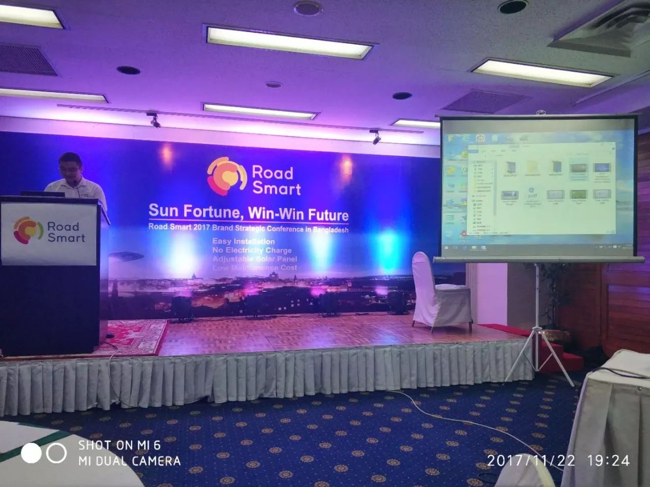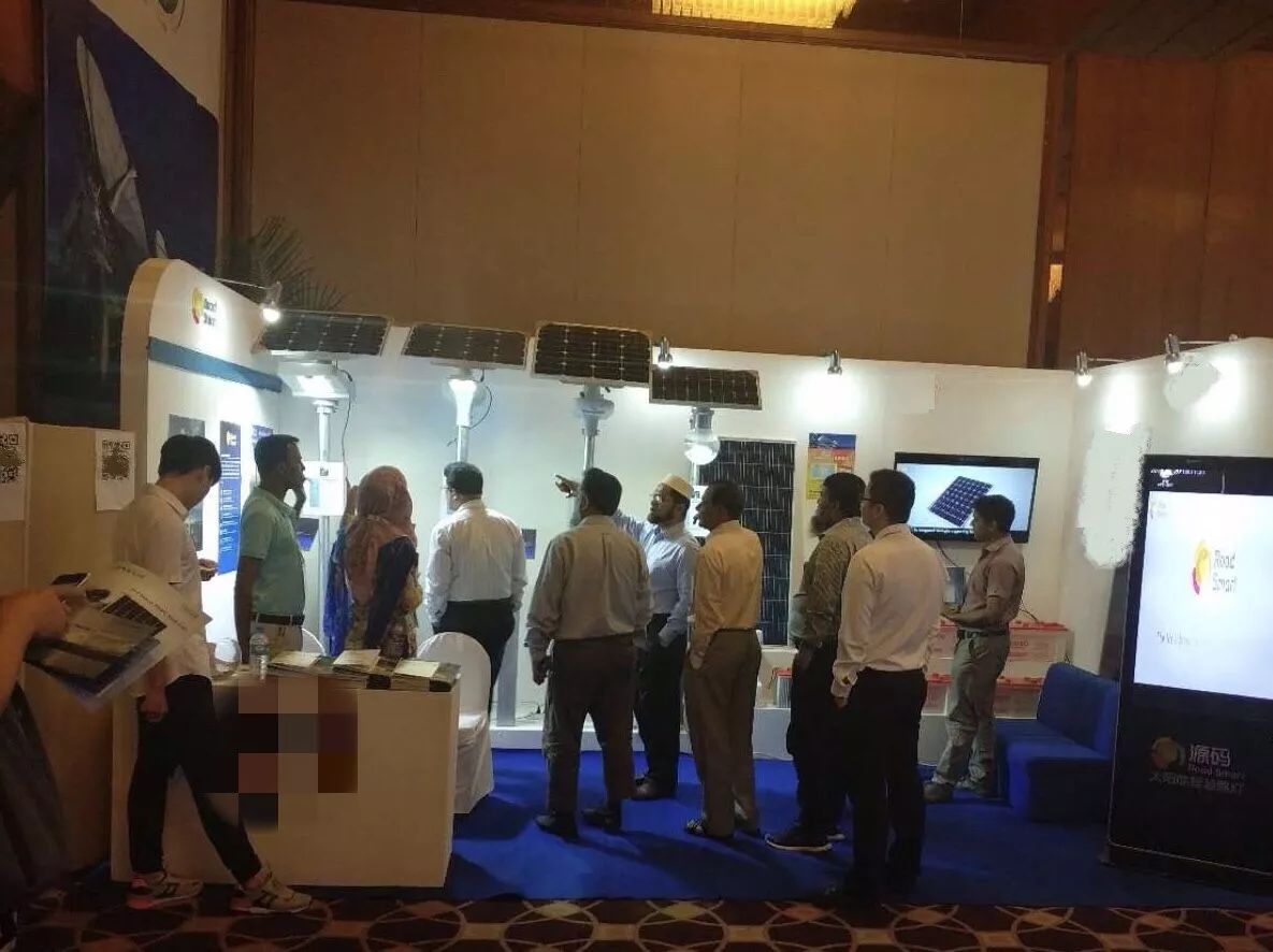 2017年11月19日,在南亞孟加拉國的首都達卡隆重的舉辦了可再生能源博覽會,源碼攜太陽能智慧路燈系列產品閃耀亮相此次展會,為此次源碼2017孟加拉品牌戰略發布會打了響亮的第一槍,產品的超高光效與優美的工藝設計驚艷全場,吸引了眾多來賓的駐足與咨詢,其中不乏政府要員、權威媒體和各類優質客戶。