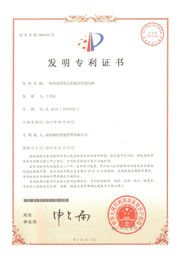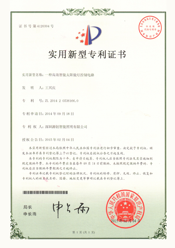 實用新型專利一種太陽能智能戶外燈
