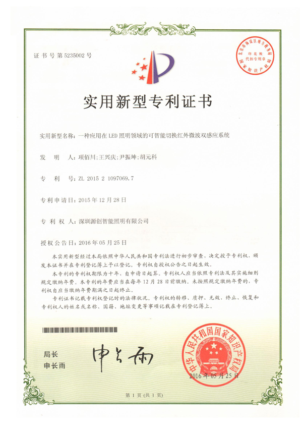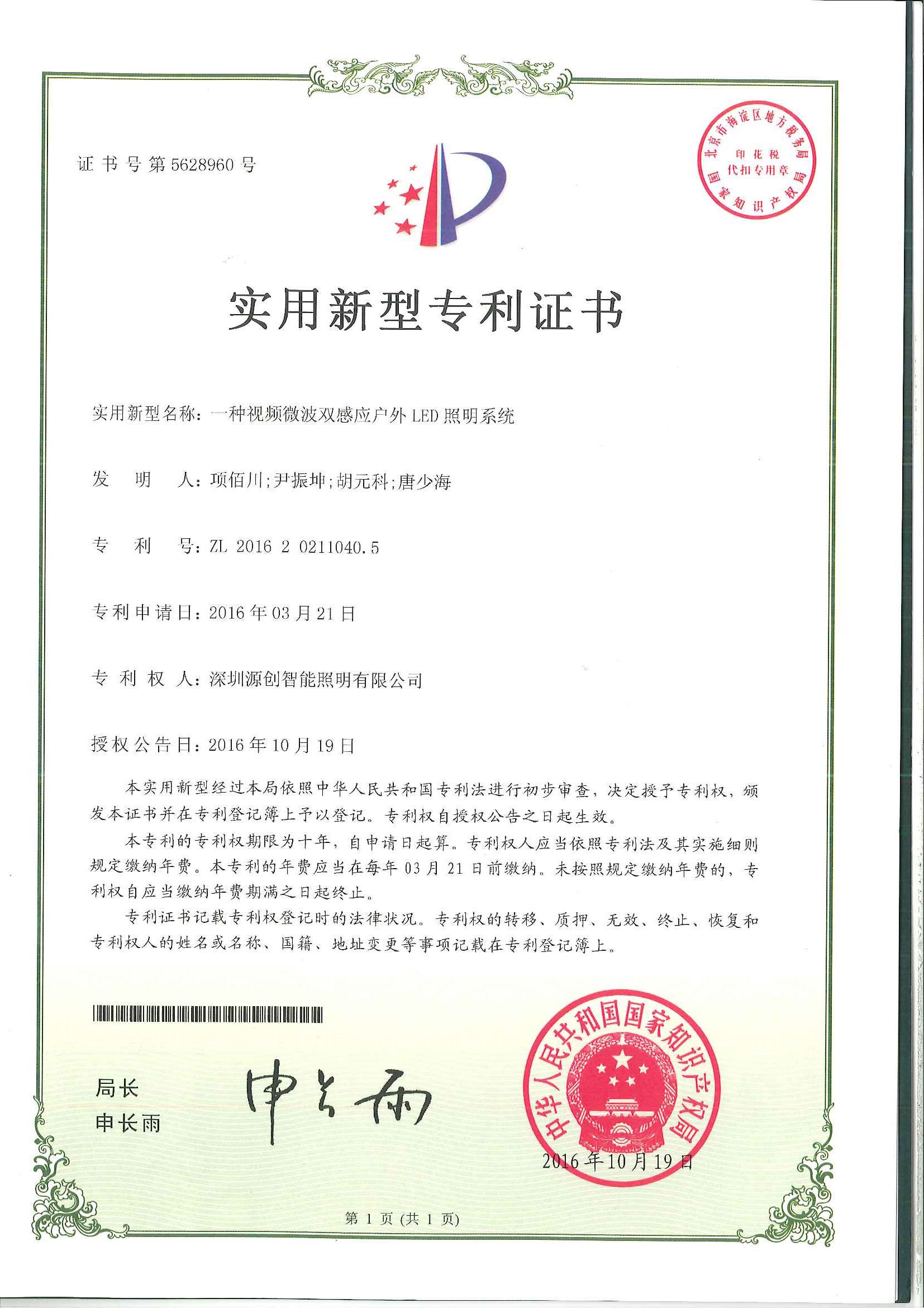 實用新型專利一種視頻微波雙感應戶外LED照明系統
